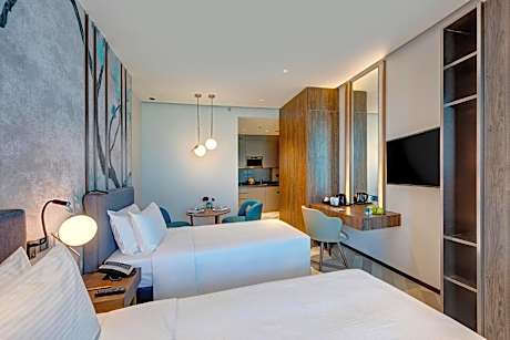 Millennium Place Barsha Heights Hotel Apartments provides flawless service and all the necessary facilities for visitors. Stay connected with your associates, as complimentary Wi-Fi is available during your entire visit.To facilitate your arrival and departure, you can pre-book airport transfer services prior to checking in. The hotel offers taxi, car hire and shuttle amenities for your ease in navigating around Dubai.When arriving by car, you'll be grateful for the on-site complimentary parking at hotel.The hotel offers reception amenities including concierge service, luggage storage and safety deposit boxes to ensure a comfortable stay for guests.Should you require assistance, the ticket service and tours can also aid in booking tickets and securing reservations at the finest shows and events in the vicinity.Whether it's an extended stay or simply needing fresh attire, dry cleaning service and laundry service provided by hotel ensures your cherished travel garments stay spotless and accessible.Your stay will be comfortable with the presence of 24-hour room service, room service and daily housekeeping as an in-room amenity for your relaxation and enjoyment. Smoking is permitted solely in the specified smoking zones allocated by hotel. In order to ensure the utmost level of relaxation, the guestrooms feature an inviting design and are equipped with all basic necessities, creating a delightful stay experience.To ensure a pleasant stay, a selection of rooms at hotel come furnished with linen service, blackout curtains and air conditioning, all designed with your ease in mind. Several chosen accommodations at Millennium Place Barsha Heights Hotel Apartments have a separate living room incorporated into the room design.In select rooms, visitors can enjoy a touch of amusement with the availability of daily newspaper and cable TV for their entertainment needs.Within specific rooms, a refrigerator, bottled water, a coffee or tea maker, instant coffee and instant tea is conveniently available for your use. Understanding the significance of bathroom facilities in enhancing visitor contentment, hotel offers a hair dryer, toiletries and bathrobes within a few chosen chambers. Start your day stress-free at Millennium Place Barsha Heights Hotel Apartments as breakfast is made available for you on the premises. How about kicking off each day of your getaway with a delicious cup of coffee? At the hotel, relish in the invigorating taste of a freshly brewed, excellent coffee. Various excellent meal offerings at hotel ensure that enticing and easily accessible options are constantly available.Throughout the day, engage in the entertaining activities available at Millennium Place Barsha Heights Hotel Apartments. Unwind effortlessly each day by exploring the salon, conveniently situated within the hotel. Unwind by the pool at hotel and cherish a leisurely moment. Enjoy a refreshing beverage al fresco at hotel's poolside bar savoring your preferred concoction. Guests who enjoy maintaining their fitness regimen while on holiday can visit the fitness center provided by hotel.