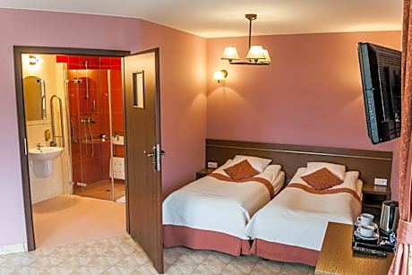 A good location for a relaxing stay in Pierwoszów, Miłocin Park Centrum Wypoczynkowo-Konferencyjne is a bed and breakfast surrounded by views of the garden. The property features a garden, bar, and parking on-site among other facilities. The bed and breakfast features a spa experience, with its spa facilities, wellness packages, and fitness room. The bed and breakfast provides lake views, a sun terrace, and free Wifi is available throughout the property. At the bed and breakfast, all units include a desk, a flat-screen TV, a private bathroom, bed linen, and towels. All rooms include a kettle, while some rooms will provide you with a fully equipped kitchenette with a dishwasher, a fridge, and a stovetop. At the bed and breakfast, each unit includes a seating area. There is an on-site coffee shop. For guests with children, the bed and breakfast offers outdoor play equipment. Guests can also warm up near the outdoor fireplace after a day of cycling. Centennial Hall is 14 miles from Miłocin Park Centrum Wypoczynkowo-Konferencyjne, while Wrocław Cathedral is 15 miles away. Copernicus Wrocław Airport is 19 miles from the property.