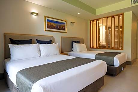 Mindil Beach Casino Resort es el destino ideal para los huéspedes más exigentes que buscan una experiencia premium en el extraordinario Territorio del Norte de Australia. Ubicado en 12 hectáreas de jardines tropicales junto al mar de Arafura, el Mindil Beach Casino Resort de 5 estrellas ofrece 154 habitaciones y es perfecto para viajes de negocios o placer. El Mindil Beach Casino Resort ofrece excelentes opciones gastronómicas y bares, instalaciones para conferencias y eventos, y un animado casino, abierto de 10:00 a 4:00 h, con una amplia gama de juegos y entretenimiento en vivo. La propiedad también cuenta con una playa privada de arena blanca con el único bar acuático de Darwin. Le facilitamos su estancia en el Mindil Beach Casino Resort con una gama de servicios gratuitos que incluyen wifi gratis, recepción 24 horas, centro de negocios y gimnasio. Puede hacer ejercicio, jugar al golf, correr o simplemente relajarse junto a la piscina.