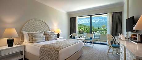 Located in Göynük, this 5-star hotel is surrounded by Taurus Mountains and Mediterranean Sea with pine trees and orange groves all around on a 361 ft² area. Mirage Park offers 4 swimming pools, spa center with Turkish Bath, steam room and a sauna. The bright rooms of Mirage Park have floor-to-ceiling windows, safety box and a satellite LED TV. You will also find air conditioning, mini-bar which is replenished on a daily basis, balcony or terrace and a private bathroom with a shower. Turkish and world cuisine is served at the à la carte Turkuaz restaurant and can be enjoyed indoors or outdoors. Bosphorus à la carte restaurant serves sea food. Hotel has 9 bars and guests can taste delicious cocktails from the Mia Casa bar. The spa center offers variety of massages for relaxation. Ranging from table tennis, mini golf and beach volley to basketball, sportive guest can find a wide range of activities to enjoy. Kids club is also available for younger guests. Kemer city center is only 3.7 mi from the hotel. Antalya Airport is 28 mi away. Free private parking is also offered on site.