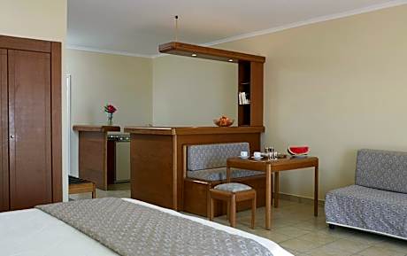 The all-inclusive 4-star Mitsis Family Village is just 656 feet from the beach of Kardamena. Umbrellas and loungers are offered both by the 2 outdoor pools and on the beach. Rooms at Mitsis Family Village offer mountain views or sea views. Each is air conditioned and has a mini-bar, coffee and tea making facilities, private bathroom with hairdryer, free toiletries, bathrobes and slippers. Some rooms include a kitchenette. The Family Village serves American buffet breakfast. The restaurant serves local and international cuisine. Snacks and drinks are offered at the hotel bars. The Mitsis Family Village features a disco, a TV corner and offers free Wi-Fi internet in all hotel areas. A mini market and a souvenir shop are available. Babysitting and book massage appointments at the sister hotel can be arranged through online Concierge platform.