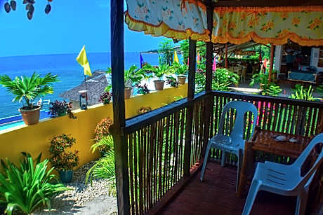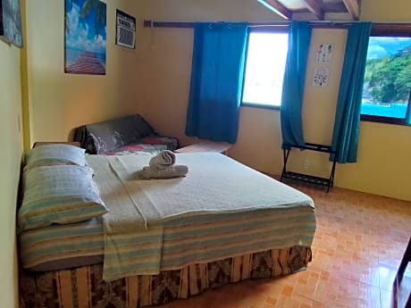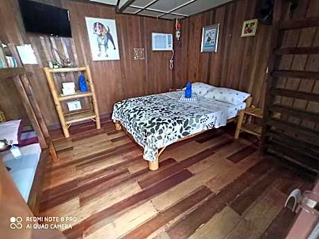 This air-conditioned double room is equipped with a queen bed and has a porch and a bathroom with hot and cold shower along with a toilet. There is an outdoor seating area with views of the ocean.