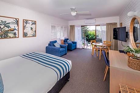 Offering renovated accommodations with a private patio or balcony, Mollymook Seascape Motel and Apartments are 2 minutes’ drive from Mollymook Beach. Guests enjoy a swimming pool and a free on-site parking. All accommodations features a kitchen or kitchenette, a dining setting and a flat-screen TV. Each studio and apartment offers a bathroom with a shower, hairdryer and guest toiletries. Some also feature a spa bath. Free parking is provided for 1 car per accommodations. You can relax alongside the pool surrounded by tropical palm trees and gardens. There is also a large communal terrace with BBQ facilities and hammocks. Mollymook Seascape Motel is just 3 minutes’ drive from central Ulladulla. Milton Ulladulla Hospital is 5 minutes’ drive away.