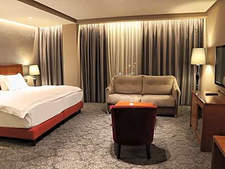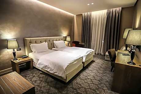 Located in the heart of Tirana, the 4-star Mondial offers a sun terrace with a bar and a rooftop swimming pool. All warmly decorated rooms are air conditioned and come with free Wi-Fi. Most of the large rooms are decorated in red colors and come with a satellite TV and mini-bar. They also have a private bathroom stocked with a hairdryer and slippers. Free sauna facilities is provided for all guests staying at the Mondial Hotel. Breakfast is served daily in the restaurant with its arched walls. Guests can have drinks on the poolside terrace and enjoy the views of the city. Mondial Hotel is ideally located just a promenade from the business and commercial district. Free parking is provided and International Airport Mother Teresa is 6.8 mi away.