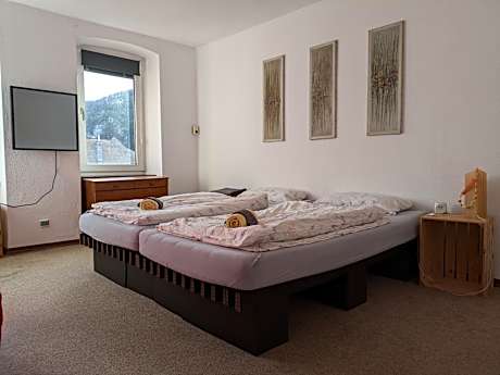 Featuring a garden, terrace and views of mountain, Monkey Factory - Mini Home-Stay Hostel is located in Traben-Trarbach, 28 miles from Natural Park Saar-Hunsrück. Offering barbecue facilities, the property is located within 15 miles of Idarkopf mountain. At the hostel, rooms come with a closet. Featuring a shared bathroom with a shower and a hairdryer, rooms at Monkey Factory - Mini Home-Stay Hostel also feature free WiFi, while some have a city view. The accommodation has a playground. Frankfurt-Hahn Airport is 11 miles from the property.