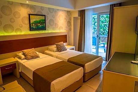 Montebello Resort Hotel - All Inclusive has a garden, terrace, a restaurant and bar in Oludeniz. Attractively located in the Oludeniz City Centre district, this hotel provides a spa & wellness center, as well as a hammam. The hotel has an outdoor swimming pool, sauna, karaoke and a shared lounge. The hotel will provide guests with air-conditioned rooms with a closet, an electric tea pot, a fridge, a minibar, a safety deposit box, a flat-screen TV, a balcony and a private bathroom with a shower. Montebello Resort Hotel - All Inclusive has a playground. You can play table tennis and darts at this 4-star hotel, and car rental is available. Speaking English, Russian and Turkish, staff are ready to help around the clock at the reception. Oludeniz Nature Reserve and Beach is a 9-minute walk from the accommodation, while Butterfly Valley is 6.9 miles from the property. Dalaman Airport is 41 miles away. License Number(s): 15395