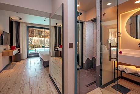 The infinity pool is a top feature of this double room. The spacious double room features air conditioning, soundproof walls, a balcony with garden views as well as a private bathroom boasting a walk-in shower. The unit has 1 bed.