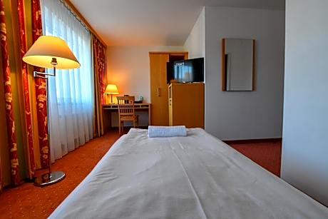 The single room features a private bathroom equipped with a shower and a hairdryer. The single room offers a wardrobe, a carpeted floor, heating, a flat-screen TV with satellite channels, as well as garden views. The unit offers 1 bed.