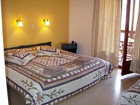 The hotel is located in the Heart of Skiathos town, 2 minute walk from the Port. Shopping, restaurants, bars and clubs can be found within a minute's walk of the hotel. The Alexandros Papadiamantis Museum is also located just around 1 minute from the hotel. This 12-room hotel also has a taverna in the courtyard, where breakfast is served, which is one of the oldest houses, built in the year 1830. The Taverna serves authentic greek dishes and fresh fish daily (caught by our own boat). The spacious rooms are fully air conditioned (individually regulated) and feature a TV, refrigerator, private bathroom with WC and shower and breakfast.