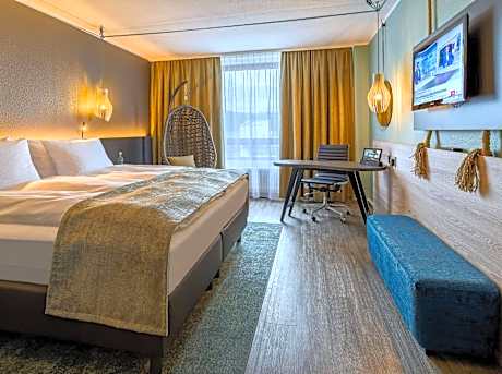 elaya hotel frankfurt oberursel 4-star hotel in Oberursel offers an international restaurant with show kitchen. Free WiFi access is available in all areas. elaya hotel frankfurt oberursel provides air-conditioned rooms and suites with tea and coffee facilities, free WiFi, satellite TV and a tablet. The property also features a restaurant with garden terrace and Swiss bar with pool table. Sky TV channels are available in the bar. The Bommersheim underground and Oberursel-Stierstadt city rail stations are a 10-minute walk away from elaya hotel frankfurt oberursel. They connect you to central Frankfurt in 20 minutes.
