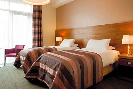 Nestled amid a spectacular 550 acre estate in Moyvalley, Kildare, this wonderfully relaxing retreat features 54 boutique-style rooms set within a 19th century Italianate mansion, surrounded by beautifully landscaped lawns and gardens. A contemporary 4-star hotel, the Moyvalley Hotel and Golf Resort features a range of facilities to ensure that you enjoy a peaceful stay. Golf enthusiasts can take advantage of the resort’s 18-hole golf course, designed by Ryder Cup star Darren Clarke. Alternatively you can enjoy a simple stroll through the picturesque estate or admire the mansion’s stunning architecture. In the evenings you can unwind with a pre-dinner drink in the Sundial Bar or, when the weather is good, on the balcony, where you can enjoy views over the estate. You can choose to take your evening meal in either the bar or the hotel’s fine dining restaurant, Waterways.