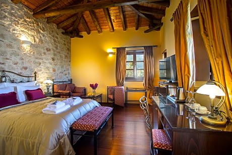 Located in Mystras, Mystras Grand Palace Resort & Spa has free bikes and seasonal outdoor swimming pool. The 5-star hotel has air-conditioned rooms with a private bathroom and free WiFi. The hotel features a restaurant, and Mystras is an 11-minute walk away. At the hotel, all rooms are equipped with a terrace. Rooms come with a flat-screen TV, and some rooms also offer a mountain view. The rooms are equipped with a seating area. A buffet breakfast can be enjoyed in the breakfast area. The property has a hot tub, a sauna and a fitness center. Hiking is among the activities that guests can enjoy near Mystras Grand Palace Resort & Spa. Speaking German, English and Russian, staff will be happy to provide guests with practical guidance on the area at the reception. Kalamata Airport is 41 mi away.