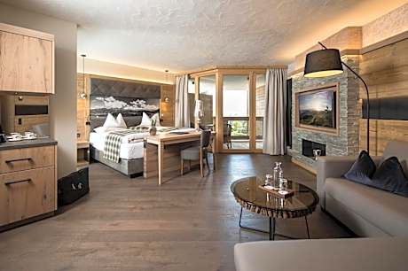 This room comes with a combined living-bedroom with a sofa, an ecological sleeping-system with untreated pine furniture, a bathroom with shower and toilet and a balcony with a panoramic view.