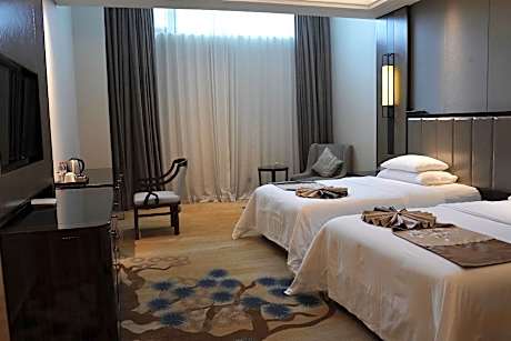 New Century Hotel Tiantai Taihe provides flawless service and all the necessary facilities for visitors.Stay connected with your associates, as complimentary Wi-Fi is available during your entire visit. The hotel offers taxi and car hire amenities for your ease in navigating around Taizhou (Zhejiang).When arriving by car, you'll be grateful for the on-site complimentary parking at hotel. The hotel offers reception amenities including concierge service, express check-in or check-out, luggage storage and safety deposit boxes to ensure a comfortable stay for guests. Should you require assistance, the ticket service and tours can also aid in booking tickets and securing reservations at the finest shows and events in the vicinity.Whether it's an extended stay or simply needing fresh attire, dry cleaning service and laundry service provided by hotel ensures your cherished travel garments stay spotless and accessible. Your stay will be comfortable with the presence of room service and daily housekeeping as an in-room amenity for your relaxation and enjoyment. Smoking is permitted solely in the specified smoking zones allocated by hotel. In order to ensure the utmost level of relaxation, the guestrooms feature an inviting design and are equipped with all basic necessities, creating a delightful stay experience.To ensure your satisfaction, certain rooms in the hotel come fitted with linen service for a more pleasant stay. Selected rooms offer in-room amusement like television as a source of entertainment for guests to enjoy.Rest assured, quenching your thirst is not a concern with bottled water available in select accommodations. Understanding the significance of bathroom facilities in enhancing visitor contentment, hotel offers a hair dryer and toiletries within a few chosen chambers. Start your day stress-free at New Century Hotel Tiantai Taihe as breakfast is made available for you on the premises. How about kicking off each day of your getaway with a delicious cup of coffee? At the hotel, relish in the invigorating taste of a freshly brewed, excellent coffee. Various excellent meal offerings at hotel ensure that enticing and easily accessible options are constantly available. Upon your arrival, don't miss experiencing bar for enjoyable in-house evening entertainment.Throughout the day, engage in the entertaining activities available at New Century Hotel Tiantai Taihe.Unwind effortlessly each day by exploring the hot tub, conveniently situated within the hotel.Guests who enjoy maintaining their fitness regimen while on holiday can visit the fitness center provided by hotel.