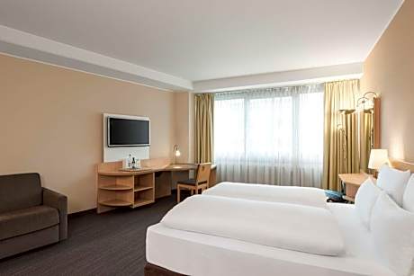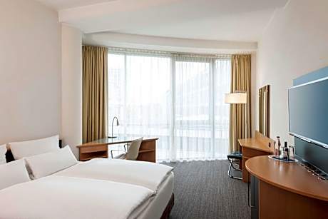 Este hotel de 4 estrellas se encuentra a 10 minutos a pie de la estación central de Düsseldorf. El NH Düsseldorf City ofrece una impresionante arquitectura moderna y gimnasio. El NH Düsseldorf City cuenta con una fachada de cristal y un espectacular vestíbulo con techo de cristal. Todas las habitaciones presentan una decoración clásica en tonos cálidos e incluyen aire acondicionado, TV vía satélite gratuita y baño. La estación de metro Oberbilker Markt/Warschauer Straße está justo enfrente del NH y ofrece conexiones directas con el recinto ferial y el aeropuerto de Düsseldorf. La calle comercial Königsallee y el río Rin están a 5 minutos en tranvía. El luminoso y moderno restaurante del NH Düsseldorf, con sus amplios ventanales, sirve un completo desayuno bufé y platos mediterráneos. El bar ofrece bebidas. El NH Düsseldorf City dispone de aparcamiento. Hay wifi gratuito en todas las zonas comunes y habitaciones.