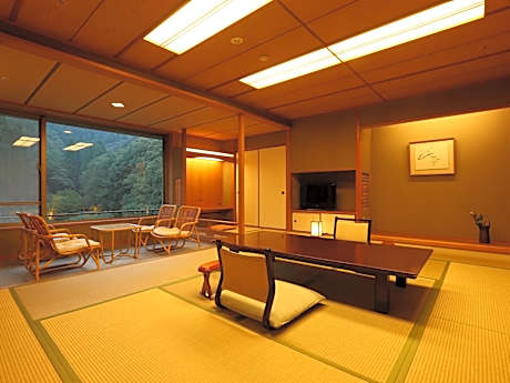 Experience an abundance of unparalleled facilities and features at Kinosaki Onsen Nishimuraya Hotel Shogetsutei.Maintain seamless communication using the complimentary Wi-Fi at ryokan.Discovering Toyooka becomes even more accessible through the taxi and shuttle amenities provided at the ryokan. For visitors traveling by automobile, complimentary parking is available. During your stay at this fantastic ryokan, the attentive front desk personnel can provide you with a range of amenities such as luggage storage and safety deposit boxes.For extended visits or whenever required, the laundromat ensures your preferred travel garments remain fresh and accessible.During leisurely days and evenings, on-site amenities such as daily housekeeping enable you to fully enjoy your accommodation.For visitors wishing to smoke, designated smoking zones can be found. At Kinosaki Onsen Nishimuraya Hotel Shogetsutei, every guestroom is provided with convenient amenities and fittings to ensure a comfortable stay.Enhance your experience at ryokan with the knowledge that certain rooms are equipped with linen service, blackout curtains and air conditioning for your convenience.Certain rooms boast in-room amusement features such as daily newspaper, television, in-room video streaming and cable TV, offering guests an enjoyable stay. In select rooms within the ryokan, a refrigerator, a coffee or tea maker, instant tea and mini bar is available to cater to your requirements when desired. It is worth noting that certain guest bathrooms feature a hair dryer, toiletries and bathrobes for your convenience. Begin your day with a scrumptious on-site breakfast available each morning at Kinosaki Onsen Nishimuraya Hotel Shogetsutei. Begin your day feeling refreshed and invigorated as you enjoy a delightful cup of quality coffee available at the cafe situated within the ryokan. At the ryokan, an assortment of easily accessible and delicious meal choices are available to satisfy your appetite whenever it strikes. Create unforgettable moments with your fellow voyagers just steps away, at ryokan's karaoke rooms, bar and nightclub, for a delightful evening together.At Kinosaki Onsen Nishimuraya Hotel Shogetsutei, guests can access vending machines that provide light snacks and beverages 24 hours a day.During your stay at ryokan, an array of engaging activities and amenities guarantees a delightful experience. Conclude your holiday perfectly with a visit to massage, hot tub, spa and sauna on your final days.Be sure to drop by the pool at ryokan at least once during your stay.
