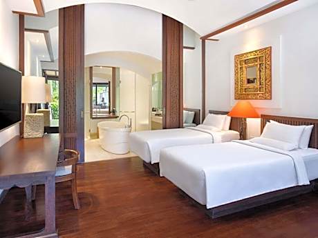 Novotel Bali Benoa Hotel offers top-notch services and amenities, ensuring guests experience utmost comfort. Share your photos and respond to emails at your convenience, thanks to the free Wi-Fi internet access offered by hotel. Should you require transportation to or from the airport, hotel is able to organize it prior to your arrival date.Taxi and car hire offerings at the hotel simplify arranging your excursions, explorations, and additional activities in Bali. Visitors can take advantage of complimentary parking directly at the hotel. Reception services such as concierge service, express check-in or check-out, luggage storage and safety deposit boxes are available to accommodate your requirements. Should you desire access to the top entertainment in the city, assistance can be provided by the hotel's tours. Traveling with minimal baggage is achievable at Novotel Bali Benoa Hotel, as the hotel's dry cleaning service and laundry service ensures your garments stay fresh. Room amenities like 24-hour room service, room service and daily housekeeping contribute to making a perfect selection for your stay.Minor items you neglected to bring won't cause major issues! Simply visit convenience stores to acquire what's necessary. Smoking is limited to specified smoking zones.Each accommodation at Novotel Bali Benoa Hotel is thoughtfully created and adorned to provide visitors with a comfortable, home-like atmosphere.In certain rooms, the hotel offers linen service, blackout curtains and air conditioning for guest convenience and satisfaction.At Novotel Bali Benoa Hotel, uniquely crafted rooms provide various layout choices, featuring spaces equipped with separate living room and balcony or terrace. In select rooms, guests at the hotel can enjoy top-notch in-room entertainment with television and cable TV available for their convenience. Rest assured, in a few chosen rooms, you will find the convenience of a refrigerator, bottled water, a coffee or tea maker, instant coffee, instant tea and mini bar at your disposal.Novotel Bali Benoa Hotel offers a hair dryer, toiletries and bathrobes in the restrooms of specific accommodations. Embark on your holiday experience in the most ideal manner. Commence each morning of your visit with an on-site breakfast. Should you prefer not to venture out for a meal, the enticing culinary choices at hotel are always available for your satisfaction. Experience an unforgettable evening with your fellow travelers just a short distance away, at hotel's bar.Should you be particularly discerning in your dining choices, you will surely appreciate having access to the on-site BBQ facilities provided at this location. Novotel Bali Benoa Hotel provides a superb assortment of leisure amenities for guests to enjoy.Make certain to allocate time for discovering the shoreline, easily reachable right from the hotel. Unwind after a long day by stopping by massage and spa to rejuvenate your senses.Each day at hotel, immerse yourself in the invigorating waters of the pool, perfect for a rejuvenating plunge or a series of revitalizing laps. Bypass the formal attire and choose a laid-back mixed drink or brew at hotel's waterside lounge. For individuals who don't want to skip their exercise routine, visiting the hotel fitness center ensures you maintain your vitality and wellness.