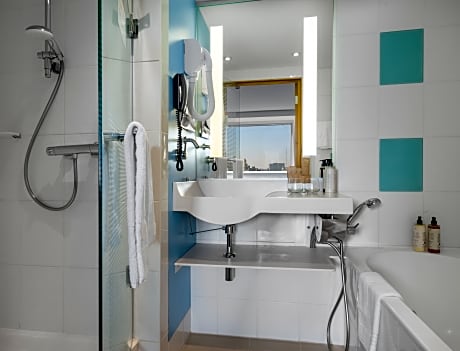 Este hotel de 4 estrellas se encuentra en pleno bulevar Victoriei, cerca de la Universidad de Bucarest y del parque Cismigiu. Ofrece acceso gratuito al centro de bienestar y a la piscina cubierta con olas artificiales, baño de vapor y gimnasio. Hay wifi gratuito en todas las instalaciones. El Novotel City Center de Bucarest dispone de habitaciones con aire acondicionado, caja fuerte para portátil, televisor LCD, minibar y tetera/cafetera. Todos los baños incluyen bañera y ducha a ras de suelo. El restaurante Winestone Victoriei 37, situado en el hotel, combina cocina de inspiración regional con una amplia selección de vinos rumanos e internacionales en un ambiente vibrante y sofisticado. Está prohibido fumar en todo el establecimiento. En las inmediaciones encontrará el centro histórico de Bucarest y la popular calle Lipscani, con una gran variedad de bares, restaurantes y cafeterías temáticas. La estación de metro Piata Universitatii está a 2 minutos a pie y la estación de tren, a 10 minutos a pie del Novotel. Se organizan servicios de transporte al Aeropuerto Internacional Henri Coanda bajo petición.