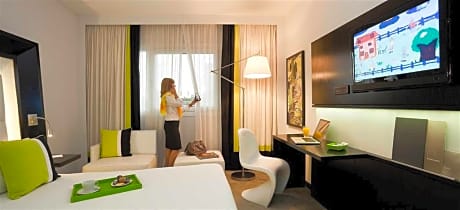 Ubicado en la Avenida Corrientes, el Novotel Buenos Aires ofrece amplias habitaciones con TV LCD. Las instalaciones incluyen una piscina al aire libre, un hammam y un gimnasio. El Obelisco está a sólo dos calles de distancia. Todas las habitaciones del Novotel Buenos Aires están equipadas con un minibar y un escritorio. El Novotel Buenos Aires también cuenta con un solárium. Los huéspedes pueden disfrutar de platos mediterráneos sencillos pero modernos en el restaurante del hotel, Patio #378. Es posible cenar al aire libre en el patio. El Novotel Buenos Aires está ubicado junto al distrito de Tribunales y está rodeado de tiendas, restaurantes y teatros.