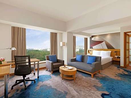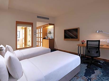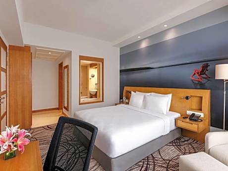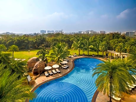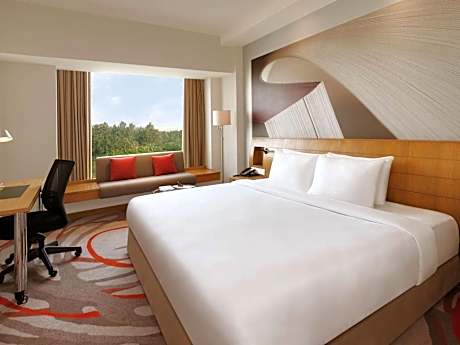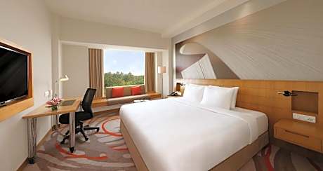 Novotel Hyderabad Convention Centre - An AccorHotels Brand provides flawless service and all the necessary facilities for visitors.Stay connected with your associates, as complimentary Wi-Fi is available during your entire visit.To facilitate your arrival and departure, you can pre-book airport transfer services prior to checking in. The hotel offers car hire and shuttle amenities for your ease in navigating around Hyderabad.When arriving by car, you'll be grateful for the on-site complimentary parking at hotel.The hotel offers reception amenities including concierge service, express check-in or check-out, luggage storage and safety deposit boxes to ensure a comfortable stay for guests.Should you require assistance, the ticket service and tours can also aid in booking tickets and securing reservations at the finest shows and events in the vicinity. Whether it's an extended stay or simply needing fresh attire, dry cleaning service and laundry service provided by hotel ensures your cherished travel garments stay spotless and accessible. Your stay will be comfortable with the presence of 24-hour room service, room service and daily housekeeping as an in-room amenity for your relaxation and enjoyment.To ensure the well-being and convenience of all visitors, smoking is strictly prohibited throughout the entire hotel. Smoking is permitted solely in the specified smoking zones allocated by hotel.In order to ensure the utmost level of relaxation, the guestrooms feature an inviting design and are equipped with all basic necessities, creating a delightful stay experience. To ensure a pleasant stay, a selection of rooms at hotel come furnished with linen service, blackout curtains and air conditioning, all designed with your ease in mind. In select rooms, visitors can enjoy a touch of amusement with the availability of daily newspaper, television and cable TV for their entertainment needs.Within specific rooms, bottled water, a coffee or tea maker and mini bar is conveniently available for your use. Understanding the significance of bathroom facilities in enhancing visitor contentment, hotel offers a hair dryer, toiletries and bathrobes within a few chosen chambers. To experience refined leisure, do not miss the opportunity to drop by the executive lounge. Start your day stress-free at Novotel Hyderabad Convention Centre - An AccorHotels Brand as breakfast is made available for you on the premises.How about kicking off each day of your getaway with a delicious cup of coffee? At the hotel, relish in the invigorating taste of a freshly brewed, excellent coffee.Various excellent meal offerings at hotel ensure that enticing and easily accessible options are constantly available. Upon your arrival, don't miss experiencing bar for enjoyable in-house evening entertainment. Visitors staying at Novotel Hyderabad Convention Centre - An AccorHotels Brand have the option to receive groceries in their room for meal preparation, courtesy of the unique service provided by the hotel. Within the hotel, discerning guests will also find on-site culinary facilities like BBQ facilities and shared kitchen to further cater to their needs. Throughout the day, engage in the entertaining activities available at Novotel Hyderabad Convention Centre - An AccorHotels Brand. Unwind and conclude each day delightfully by stopping by massage, salon, steam room, spa and sauna, ensuring a soothing experience. Unwind by the pool at hotel and cherish a leisurely moment.Enjoy a refreshing beverage al fresco at hotel's poolside bar savoring your preferred concoction. Guests who enjoy maintaining their fitness regimen while on holiday can visit the fitness center provided by hotel.