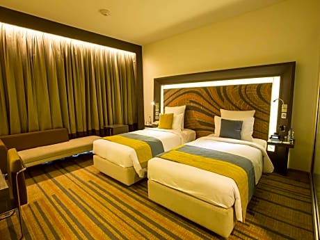 Nos esmeramos en garantizar la comodidad de nuestros huéspedes con servicios y comodidades de primera categoría. Manténgase conectado durante su visita gracias al acceso gratuito a internet. Antes de su fecha de llegada, puede organizar el transporte al aeropuerto, lo que le garantiza una experiencia fluida y eficiente tanto a la llegada como a la salida. Los servicios de taxi y alquiler de coches del hotel le garantizan una exploración sin complicaciones de Calcuta. El hotel ofrece aparcamiento gratuito para los huéspedes que lleguen con su propio medio de transporte. Planifique fácilmente sus actividades diarias y necesidades de viaje con el servicio de conserjería, el check-in o check-out exprés, la consigna de equipaje y las cajas de seguridad que ofrece la recepción. Conseguir pases para las principales atracciones de la ciudad es sencillo gracias al servicio de venta de entradas y tours del hotel. Para visitas prolongadas o cuando lo necesite, el servicio de tintorería y lavandería le garantiza que su ropa de viaje preferida se mantendrá limpia y accesible. Durante sus días y noches de ocio, las comodidades de la habitación, como el servicio de habitaciones 24 horas, el servicio de habitaciones y el servicio de limpieza diario, le permitirán disfrutar al máximo de su estancia. En zonas designadas, solo se permite fumar. Diseñadas para brindar comodidad, cada habitación ofrece una variedad de servicios que garantizan un sueño reparador, manteniendo el máximo confort. Para una estancia más placentera, algunas habitaciones del hotel están equipadas con servicio de sábanas, cortinas opacas y aire acondicionado. En algunas habitaciones, los huéspedes pueden disfrutar de entretenimiento en la habitación, como periódico diario, televisión y televisión por cable. Tenga la seguridad de que sus necesidades de hidratación estarán cubiertas, ya que algunas habitaciones están equipadas con refrigerador, cafetera o tetera y minibar. Mantenga su higiene y comodidad utilizando el secador de pelo, los artículos de tocador y las batas de baño disponibles en algunos baños. Los precios de alojamiento pueden incluir la entrada al salón ejecutivo, que ofrece servicios premium en un ambiente de lujo refinado. Cada mañana en el Novotel Kolkata Hotel & Residences, una marca de AccorHotels, un delicioso desayuno casero le dará el comienzo perfecto al día. Comience sus mañanas de vacaciones con el mejor café, que se sirve a diario en la cafetería del hotel. Durante su visita, disfrute de una variedad de deliciosas opciones culinarias en el hotel para mejorar su experiencia. ¿Le preocupan sus preferencias gastronómicas? ¡No se preocupe! El Novotel Kolkata Hotel & Residences, una marca de AccorHotels, ofrece una variedad culinaria con opciones halal para todos los gustos. ¡Disfrute de una velada fantástica sin esfuerzo! Disfrute de una noche divertida sin salir del bar. Para los paladares más exigentes, la zona de barbacoa y la cocina compartida a su disposición serán sin duda apreciadas. Disfrute de las numerosas actividades disponibles en el Novotel Kolkata Hotel & Residences, una marca de AccorHotels. Consiéntase con masajes, hot tub, salón de belleza, baño de vapor, spa y sauna para una experiencia memorable. Comience sus vacaciones de la mejor manera con un chapuzón en la piscina. Elimine las calorías de las vacaciones visitando el hotel y utilizando sus instalaciones de ejercicio bien equipadas.