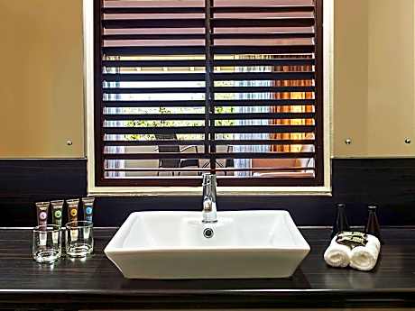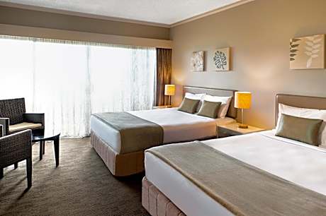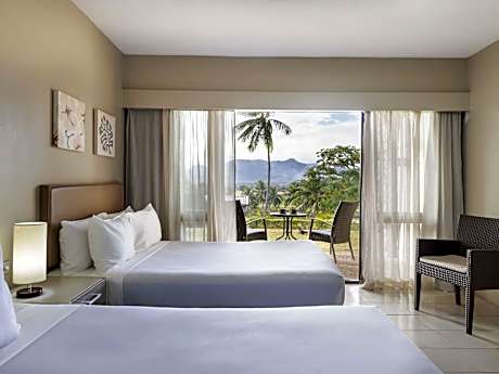 Set on 42 acres of tropical gardens and just 5 minutes’ drive from Nadi International Airport, Novotel Nadi features free on-site parking, and air-conditioned rooms overlooking the golf course and gardens. Leisure facilities at Novotel Nadi include a golf course, tennis court, indoor games room, fitness center and Senikai Spa and pool. Talei Restaurant offers an à la carte menu with international cuisine and Talei Bar is the perfect place to relax with a refreshing cocktail in the beautiful gardens. This 4-star hotel has rooms with traditional Fijian decor, high ceilings, satellite TV, a refrigerator and a tea/coffee maker. Nadi Novotel Hotel is 10 minutes’ drive from the Nadi town center, with its local shopping, markets, bars and cafés. Port Denerau is a 15-minute drive away and Garden of the Sleeping Giant is 26 minutes' drive away.