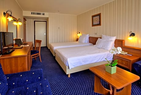 Located at the heart of Plovdiv, on the side of river Maritsa, Grand Hotel Plovdiv looks out towards Plovdiv Old Town and the picturesque Rhodope Mountains. The International Fair is a 5-minute walk away, while Plovdiv's Old Town is a 15-minute walk away. The spacious, contemporarily designed rooms offer any possible comfort and all those who have to keep in touch can enjoy the convenience of the free Wi-Fi in the entire hotel. Grand Hotel Plovdiv houses a café and a lobby bar, where guests can taste delicious local and international meals. The hotel has a brand-new luxurious casino - Platinum Casino Plovdiv. Here you can find an extensive selection of live games and slot machines, join our daily poker tournaments or just enjoy a fresh cocktail at Platinum bar. Visit our casino and experience endless thrill and action, combined with multiple opportunities to win, accompanied by exceptional service. The hotel also offers at a surcharge a heated indoor swimming pool, hot tub, sauna, steam bath, hair studio and spa center with a variety of massages. Facilities include 5 conference halls, with different hosting capacities. The Plovdiv Airport is 9.3 mi from the property, while Bachkovo Monastery is 19 mi.