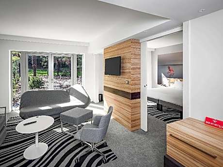 This Novotel hotel provides 4-star accommodations 0.6 mi from Biarritz-Anglet-Bayonne Airport. The rooms have an private bathroom, TV and work area. Free W-Fi is available throughout the hotel. Novotel Resort & Spa Biarritz Anglet is set in a 3-hectare park and has a variety of leisure activities including an exterior heated swimming pool. Novotel’s restaurant Ardoise Gourmande serves traditional and local cuisine and has views of the park and swimming pool. During nice weather, guests can dine on the terrace. Guests are invited to enjoy a drink at Au Comptoir wine bar open until midnight. The hotel also provides rooms service for guests’ convenience. Novotel Resort & Spa Biarritz Anglet is a good base to explore the Basque Country. It is 1640 feet from the town center and 2.5 mi from beaches. San Sebastian is a 30-minute drive away. Guests have access to free parking.