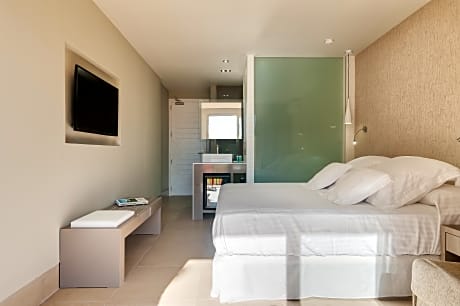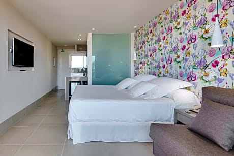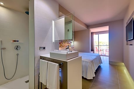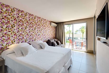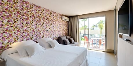'Perfectly situated, the hotel is just 300 m from the beautiful Des Torrent beach and 10 minutes from other beaches such as Compte, Cala Tarida and Cala Bassa, considered by some, as the best beaches and coves on Ibiza. It is just 22 km from Ibizas airport and very close to the town of San Jose and the shopping area. 'Dream holidays on one of the most beautiful islands in the world, surrounded by idyllic coves bathed by calm, crystal-clear seas. The Occidental Ibiza**** hotel (belonging to the Barceló Hotel Group and formerly the Barceló Pueblo Ibiza) is situated in a privileged area, just a few metres from the magnificent Port des Torrent beach and 10 minutes from the famous coves of Cala Compte, Cala Tarida and Cala Bassa. A modern motorway provides quick and easy access from this area to the Dalt Vila (old town) and the airport. Our Ibiza hotel's 346 B-Rooms are modern and spacious, making every stay a fulfilling experience. The buffet restaurant has a variety of cuisine on offer, with frequent themed dinners. Enjoy a luxurious stay at our Ibiza all inclusive hotel. As well as the 3 magnificent swimming pools for adults at our boutique Ibiza hotel, there is also a children's pool, with a fabulous bar where you can enjoy a soft drink or snack while watching the sunset. If you are travelling with your family, the hotel has entertainment programmes for all ages, an adventure playground and a Barcy Club for the little ones. In addition, the boutique hotel has a sports area with a multi-purpose court, a beach volleyball court and a massage service, providing added relaxation and wellbeing for all guests. The Occidental Ibiza all inclusive hotel has recently been refurbished and is now a modern, Mediterranean-style hotel which will satisfy the needs of even the most discerning guests, whether they are travelling for a romantic getaway, or with their family or a group of friends, on an island where dreams really can come true.