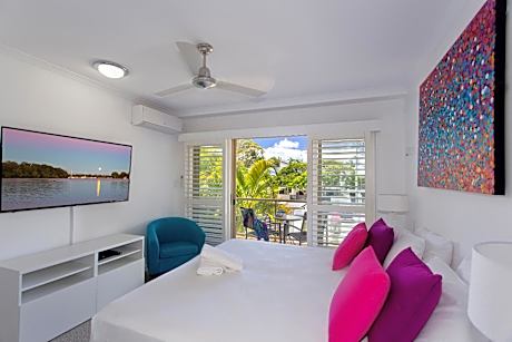 Offshore Noosa Resort is perfectly located on the beautiful Noosa River, with its sparkling, clear, blue waters and golden sands enticing your senses. The variety of accommodations at Offshore Noosa Resort (1 bed studio apartments, 2 & 3 bedroom apartments) offer something for everyone, from couples looking for a romantic secluded getaway, to families looking for a spacious accommodations to share quality time together. The open plan of the living areas encourages guests to connect and engage in a relaxing and inviting environment. All apartments feature balconies with outdoor dining furniture to enjoy sharing alfresco style meals, catching up or simply relaxing. A spa pool, sauna, children’s wading pool and barbecue area give guests the opportunities to enjoy the outdoor lifestyle of Noosa. This tropical environment is enhanced by sun lounges and dining furniture to encourage outdoor dining and relaxing by the pool. The well-designed resort creates privacy but retains an open airy feeling. The low-rise buildings are serviced by elevators (to some buildings) and stairs to the two levels, with secure undercover parking below. Offshore Noosa Resort is 30-minutes’ drive from the Sunshine Coast Airport and 90-minutes’ drive from Brisbane Airport. Embrace the ambiance, the sun and the salt air. It’s time to plan your next escape to Offshore Noosa.