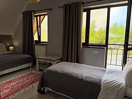 OISHE Boutique Hotel features a garden, terrace, a restaurant and bar in Kazbegi. Featuring family rooms, this property also provides guests with a grill. The property provides a 24-hour front desk, airport transportation, room service and free WiFi. At the hotel, each room includes a balcony. The private bathroom is equipped with a shower, free toiletries and a hairdryer. Guest rooms include a closet. A continental breakfast is available at OISHE Boutique Hotel. Republican Spartak Stadium is 30 miles from the accommodation.