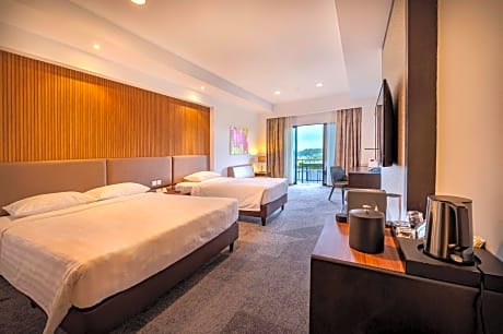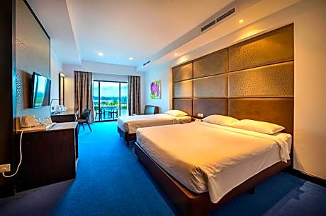 This spacious air-conditioned quadruple room features a private balcony. The room is fitted with a flat-screen satellite TV, electric kettle, safe and desk. The private bathroom includes shower facilities, a hairdryer and free toiletries.