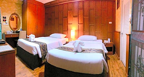 Orchid Resort ofrece un servicio impecable y todas las instalaciones necesarias para sus visitantes. Manténgase conectado con sus acompañantes gracias al wifi gratuito disponible durante toda su visita. Para facilitar su llegada y salida, puede reservar el servicio de traslado al aeropuerto con antelación a su llegada. El hotel ofrece taxis y alquiler de coches para que pueda desplazarse fácilmente por Bangkok. Si llega en coche, agradecerá el aparcamiento gratuito del hotel. El hotel ofrece servicios de recepción, como servicio de conserjería, check-in o check-out exprés y consigna de equipaje para garantizar una estancia cómoda. Si necesita ayuda, el servicio de venta de entradas y tours también puede ayudarle a reservar entradas y a conseguir reservas para los mejores espectáculos y eventos de la zona. Tanto si se trata de una estancia prolongada como si simplemente necesita ropa limpia, los servicios de tintorería y lavandería del hotel garantizan que su ropa de viaje esté impecable y a mano. El servicio de habitaciones del hotel es una excelente opción para su estancia. Para garantizar el bienestar y la comodidad de todos los visitantes, está estrictamente prohibido fumar en todo el hotel. Solo se permite fumar en las zonas designadas por el hotel. Para garantizar el máximo nivel de relajación, las habitaciones presentan un diseño acogedor y están equipadas con todo lo necesario para una estancia placentera. Para garantizar una estancia placentera, algunas habitaciones del hotel incluyen servicio de ropa de cama y aire acondicionado, todo pensado para su comodidad. Varias habitaciones del Orchid Resort cuentan con balcón o terraza. En algunas habitaciones, los huéspedes pueden disfrutar de un toque de diversión con la televisión y la televisión por cable. Algunas habitaciones disponen de nevera, agua embotellada, cafetera, tetera, café instantáneo, té instantáneo y minibar. Conscientes de la importancia de las instalaciones de baño para la comodidad de los huéspedes, el hotel ofrece secador de pelo, artículos de aseo y albornoces en algunas habitaciones. Comience el día sin estrés en el Orchid Resort con el desayuno disponible en el hotel. La excelente oferta gastronómica del hotel garantiza opciones atractivas y de fácil acceso. Disfrute de las entretenidas actividades del Orchid Resort durante todo el día. Relájese cada día explorando el masaje, convenientemente ubicado dentro del hotel. Relájese junto a la piscina y disfrute de un momento de relax.