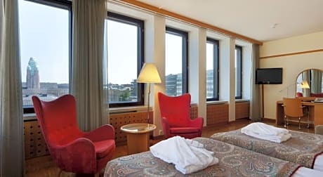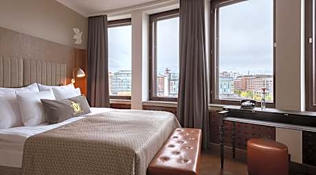 This elegant hotel is next to Helsinki Central Station, 5 minutes’ walk from the Esplanadi shopping streets. It offers a rooftop terrace, in-room flat-screen TVs, plus free sauna and WiFi access. Original Sokos Hotel Vaakuna Helsinki was built for the 1952 Olympics and is set in a heritage-listed building. The rooms include air conditioning, a mini-bar and modern décor. The stylish á la carte restaurant offers a mix of Finnish and international dishes. After-dinner drinks can be enjoyed in the bar, which offers magnificent views of Helsinki’s bustling city center. The friendly staff is happy to provide tourist information and other services. Housed in the same building is Sokos Department Store, where guests enjoy a 10 % discount.