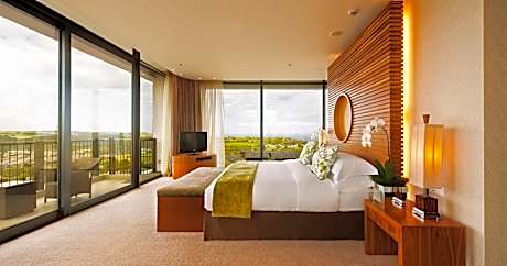 Oubaai Hotel Golf & Spa in Herolds Bay features an 18-hole golf course designed by Ernie Els. The resort has 3 gourmet restaurants, an award-winning spa and panoramic views of the ocean and Outeniqua Mountains. All of the stylish rooms and suites at the Oubaai Hotel Golf & Spa feature a spacious marble bathrooms with glass-enclosed rain showers, separate baths and environmentally friendly bath products. Guests can relax in front of the 32-inch LCD TV with cable and satellite channels. Cucina serves breakfast in a contemporary setting with indoor and outdoor seating, while meals can be enjoyed in a cozy environment at Herolds Bistro and Bar. The more casual Clubhouse Restaurant offers views of the surrounding golf course. Oubaai Hotel Golf & Spa offers a range of traditional African remedies and European treatments in the Freesia Spa. Guests can also enjoy the swimming pool and the gym, which features sophisticated cardiovascular and weight-lifting equipment. Other facilities offered include a tennis and squash court, a business and conference center, a whale viewing deck, and a Golf Pro shop. The hotel is a 10-minute drive from George Airport.