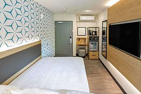 Located in downtown Redwood City, Kasa Niche Hotel Redwood City under new management property is just 5 miles from Stanford University. It features free Wi-Fi, free coffee in the lobby each morning and guest laundry services. The simply styled rooms also include a work desk and ironing facilities." with "A small fridge is standard in every room at Kasa Niche Hotel Redwood city. A communal microwave is located in the lobby of the building for guests to share." California’s Great America and San Francisco International Airport are each less than a 30-minute drive from Kasa Niche Hotel Redwood City. Silicon Valley in Palo Alto is a 14-minute drive away.