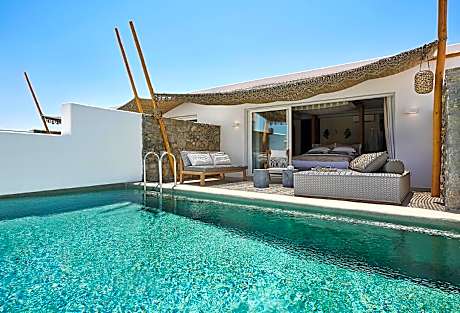 Palladium Hotel is located at Platys Gyalos, a 5-minute walk from Psarou and Platys Gyalos Beaches, as well as just a breath away from the famous Nammos. It is a 5-star hotel featuring free WiFi in all areas, an outdoor and an indoor heated swimming pool, a lavish spa and fashion boutique. A state-of-the art fitness center and sauna are also available. Each of the elegant suites and rooms is air-conditioned and includes a seating area, a flat-screen TV with satellite channels and furnished private balconies. All units in the hotel are equipped with a coffee machine, hair dryer and ironing facilities. Korres toiletries can be found at the private bathroom. Some units also feature a private pool or hot tub. Guests are greeted with a welcome drink and wake up to a rich American breakfast buffet served daily. Guests in rooms with a private pool can also enjoy a floating breakfast in the privacy of their own pool. Services that can be enjoyed at the spa center include massages, hair, beauty and facial treatments, hammam and hot tub. . La Veranda restaurant serves innovative Mediterranean cuisine created from fresh Greek products. Palladium’s lobby bar, overlooking the Aegean sea and the starlit swimming pool offers Signature cocktails. The poolside bar offers lounge-style sunbeds and refreshing drinks. Other options include a snack bar. In-room dining is also available upon request. The hotel’s 24-hour front desk can arrange baby-sitting and laundry service. Guest services include free two-way transfer to/from Mykonos Airport/Port, concierge service and doctor on call. Mykonos town and Mykonos airport are 10-minute drive away. Free on-site parking is available. Guest services include free two-way transfer to/from Mykonos Airport/Port from 07:00 until 00:00.