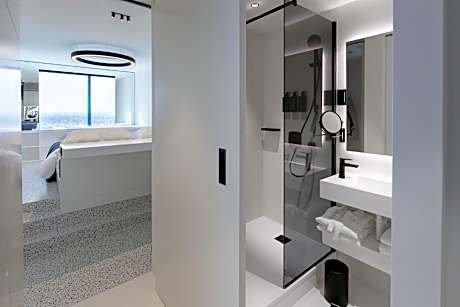 What do you think can be found in a room we call a relaxation zone? A bath overlooking the city. Specially designed privacy windows make you invisible from the outside, so you can enjoy an opulent bath in the bathtub right next to the window.