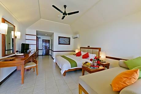 Experience an abundance of unparalleled facilities and features at Villa Nautica Paradise Island Resort.Maintain seamless communication using the complimentary Wi-Fi at resort.Effortlessly arrange transportation to and from the airport using the resort's airport transfer services. Discovering Maldive Islands becomes even more accessible, thanks to the shuttle amenities provided at the resort. During your stay at this fantastic resort, the attentive front desk personnel can provide you with a range of amenities such as concierge service, express check-in or check-out, luggage storage and safety deposit boxes. In search of city's top entertainment, seek assistance at the resort's ticket service and tours for reservations.At the resort, utilize the on-site laundromat, dry cleaning service and laundry service to maintain your beloved travel attire fresh, allowing you to bring fewer clothes.Craving relaxation? Make the most of your stay at the Villa Nautica Paradise Island Resort with convenient amenities like 24-hour room service, room service and daily housekeeping at your disposal. For visitors wishing to smoke, designated smoking zones can be found.At Villa Nautica Paradise Island Resort, every guestroom is provided with convenient amenities and fittings to ensure a comfortable stay. Enhance your experience at resort with the knowledge that certain rooms are equipped with linen service, blackout curtains and air conditioning for your convenience. A few accommodations within Villa Nautica Paradise Island Resort offer unique design elements such as a balcony or terrace. Certain rooms boast in-room amusement features such as television and cable TV, offering guests an enjoyable stay.In select rooms within the resort, a refrigerator, bottled water, a coffee or tea maker, instant coffee, instant tea and mini bar is available to cater to your requirements when desired. It is worth noting that certain guest bathrooms feature a hair dryer, toiletries and bathrobes for your convenience. Begin your day with a scrumptious on-site breakfast available each morning at Villa Nautica Paradise Island Resort. Begin your day feeling refreshed and invigorated as you enjoy a delightful cup of quality coffee available at the cafe situated within the resort. At the resort, an assortment of easily accessible and delicious meal choices are available to satisfy your appetite whenever it strikes.At Villa Nautica Paradise Island Resort, they are committed to catering to your unique requirements. They offer a variety of meal choices, encompassing halal alternatives for those with special dietary preferences. Create unforgettable moments with your fellow voyagers just steps away, at resort's karaoke rooms, bar and nightclub, for a delightful evening together. At the resort, discerning guests can also enjoy on-site culinary facilities like BBQ facilities tailored to their preferences.During your stay at resort, an array of engaging activities and amenities guarantees a delightful experience. During your stay, don't forget to allocate some moments to experience the readily available shoreline. Conclude your holiday perfectly with a visit to massage, hot tub, salon, steam room, spa and sauna on your final days. Be sure to drop by the pool at resort at least once during your stay.At Villa Nautica Paradise Island Resort, utmost care is taken to ensure guests' comfort. Relish your preferred beverage in your swimwear by the resort's poolside bar. Discover the fitness amenities at resort to maintain your health and strength during your getaway.