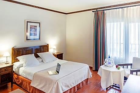 This hotel is located on a La Mancha-style estate in the town of Manzanares, near 3 of the most beautiful natural parks in the country: Cabañeros, las Lagunas de Ruidera and las Tablas de Daimal Natural Parks. Trees, bushes, gardens, and plants impregnate this place with greenery, and with its swimming pool make for a beautiful setting within the La Mancha countryside. The public spaces and the rooms of the hotel contain wooden furniture, leather chairs and forged wall lights which contribute to the affable and cozy atmosphere. The most representative dishes of the restaurant are the migas ruleras (fried breadcrumbs), the gachas (pâté), the galianos manchegos, the duelos y quebrantes, the cod tiznao, the rabbit mojete and the caldereta manchega (lamb stew).