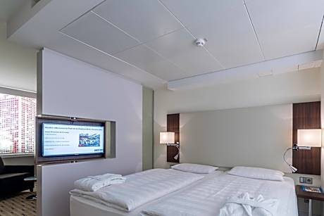 Este hotel de 4 estrellas superior ofrece 3 restaurantes, spa y habitaciones con aire acondicionado y TV de pantalla plana. Es el hotel más alto de Berlín y está situado en plena plaza Alexanderplatz. Todas las habitaciones y suites del Park Inn by Radisson Berlin Alexanderplatz disponen de baños de mármol con duchas de alta presión y suelo radiante. Hay wifi gratuito en todo el hotel. En el Spagos Bar&Lounge podrá disfrutar de comidas y bebidas preparadas al instante en la cocina abierta. El centro de bienestar del Park Inn incluye sauna, gimnasio y servicio de masajes. Los huéspedes también pueden relajarse en la terraza de la última planta, que ofrece magníficas vistas del centro de Berlín. El Park Inn by Radisson se encuentra frente a la estación de Alexanderplatz, que ofrece conexiones de autobús, tranvía, metro y tren S-Bahn con cualquier punto de Berlín. La Isla de los Museos y la animada zona de Hackescher Markt están a 10 minutos a pie.
