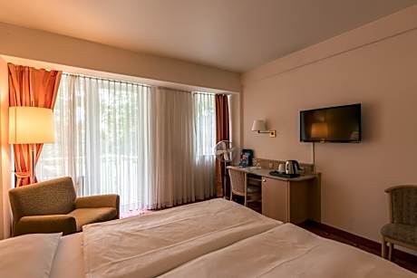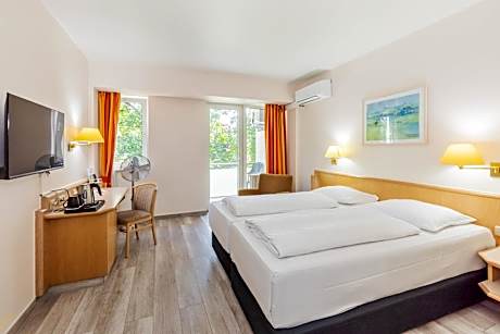 Just a 12-minute drive from Frankfurt Airport, this hotel offers free parking and modern rooms with a flat-screen TV. It enjoys a quiet park location and good access to the A66 motorway. All rooms at the 3-star Parkhotel Frankfurt Airport include flat-screen TV and desk with Wi-Fi access. A hairdryer and cosmetic mirror are provided in each bathroom. Hattersheim’s Old Town district and pedestrian zone can be explored on foot from the Parkhotel Frankfurt Airport. Hattersheim S-Bahn Train Station is a 5-minute walk away. Guests enjoy easy road and rail access to the centers of Frankfurt, Mainz and Wiesbaden. An airport shuttle (from the hotel to the airport only) is available for an extra charge.