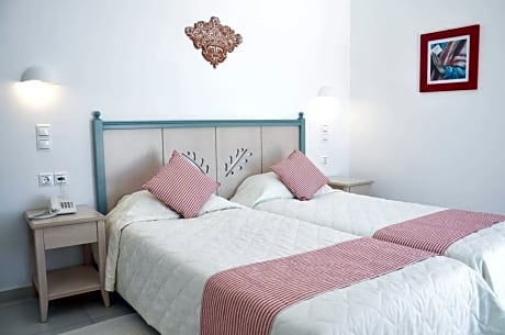 Overlooking magnificent sea views, Paros Bay enjoys direct access to a sandy beach. It features a large swimming pool with deck chairs and umbrellas. Built in the traditional Cycladic style of the island, Paros Bay offers tastefully decorated rooms with beautiful views of the sea, the pool or the garden. Guests can enjoy sunbathing and water sport activities at the sandy beach or the small rocky bays in front of the hotel. The seawater swimming pool offers a great alternative, while it is the ideal place for a drink. An open-air hot tub is featured. Free WiFi is available in public areas. A breakfast buffet is provided, and a variety of light meals, ice creams and soft drinks are available throughout the day. The Paros Bay Hotel restaurant offers delicious Greek dishes in a relaxed setting facing the sea. The hotel is just 1.6 mi from the town and port of Parikia, and 3.1 mi from Naousa. Free parking is available on site. Transfer service is provided from the port , at an additional cost at minimum rate of 15€