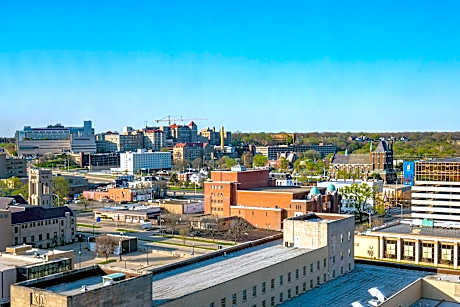 El Peoria Marriott Pere Marquette ofrece bicicletas gratuitas, gimnasio, salón compartido y bar en Peoria. Este hotel de 4 estrellas ofrece recepción 24 horas y cajero automático. El hotel cuenta con piscina cubierta, hot tub y servicio de habitaciones. Se sirve desayuno buffet. El Peoria Marriott Pere Marquette cuenta con un restaurante de cocina americana. También se ofrecen opciones vegetarianas, sin lácteos y veganas. Para mayor comodidad de los huéspedes, el alojamiento cuenta con un centro de negocios. El Centro Cívico de Peoria se encuentra a 8 minutos a pie del Peoria Marriott Pere Marquette, mientras que la Universidad Bradley está a 2,6 km. El Aeropuerto Internacional de Peoria está a 8 km y ofrece servicio de traslado al aeropuerto (de pago).