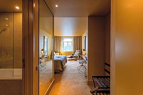 Con vistas al río Duero en Oporto, el hotel de 5 estrellas Palácio Do Freixo se encuentra en un edificio barroco restaurado del siglo XVIII. Ofrece zonas comunes aristocráticas de arquitectura señorial, combinadas con modernas habitaciones con TV de pantalla plana. Las habitaciones del Pestana Palácio do Freixo son amplias, cuentan con aire acondicionado y zona de estar independiente. Los baños incluyen artículos de aseo de lujo y secador de pelo. Algunas habitaciones ofrecen vistas al río Duero. Los huéspedes pueden relajarse en una tumbona junto a la piscina infinita del hotel, con vistas al río. El spa cuenta con baño turco, piscina cubierta climatizada y sauna. También se ofrecen tratamientos de masaje. El restaurante del Pestana Palácio do Freixo sirve un desayuno bufé diario elaborado con ingredientes frescos. Los huéspedes pueden pedir aperitivos ligeros en la piscina o cócteles por la noche en el bar del hotel. El hotel se encuentra a 1 km de la estación de tren de Campanhã. El aeropuerto de Oporto está a 20 minutos en coche y hay aparcamiento gratuito. El Pestana Palácio do Freixo ofrece servicio de traslado gratuito al centro de la ciudad.