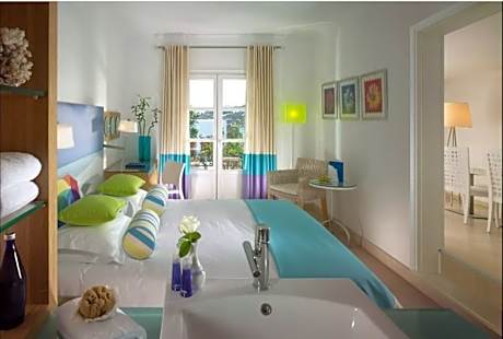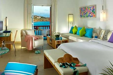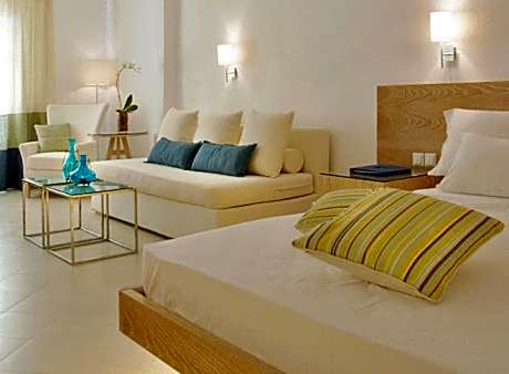 Petasos Beach stands on a private peninsula between Platis Yialos and Psarou Beach. It offers a 500 square-yard spa & wellness center, a fitness center and a 2-level swimming pool with waterfall. The Aqua Marine Spa offers revitalizing and thalasso-therapy treatments, as well as honeymoon packages. The luxuriously renovated Petasos Beach combines aesthetically perfect premises with breathtaking nature. Its innovatively designed rooms offer stunning views of the Aegean Sea. All accommodations are equipped with Wi-Fi internet access. Deluxe and superior rooms also feature a spa bath and steam cabin. There are 2 restaurants within the premises of the Resort, with a great view of the Aegean sea.