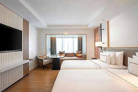 Providing free toiletries and bathrobes, this double room includes a private bathroom with a walk-in shower, a hairdryer and slippers. The spacious air-conditioned double room provides a flat-screen TV with cable channels, soundproof walls, a mini-bar, a tea and coffee maker as well as city views.