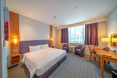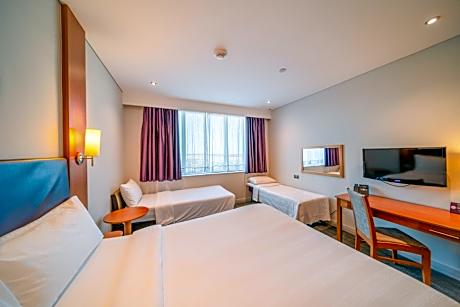 Premier Inn Abu Dhabi Airport (Business Park) provides flawless service and all the necessary facilities for visitors.Stay connected with your associates, as complimentary Wi-Fi is available during your entire visit.The hotel offers taxi and car hire amenities for your ease in navigating around Abu Dhabi.When arriving by car, you'll be grateful for the on-site complimentary parking at hotel.The hotel offers reception amenities including luggage storage and safety deposit boxes to ensure a comfortable stay for guests.Whether it's an extended stay or simply needing fresh attire, dry cleaning service and laundry service provided by hotel ensures your cherished travel garments stay spotless and accessible.Your stay will be comfortable with the presence of room service and daily housekeeping as an in-room amenity for your relaxation and enjoyment. Need something at the last minute? The convenience stores has you covered, ensuring your requirements are met without any inconvenience.To ensure the well-being and convenience of all visitors, smoking is strictly prohibited throughout the entire hotel. Smoking is permitted solely in the specified smoking zones allocated by hotel. In order to ensure the utmost level of relaxation, the guestrooms feature an inviting design and are equipped with all basic necessities, creating a delightful stay experience.To ensure your satisfaction, certain rooms in the hotel come fitted with air conditioning for a more pleasant stay. Selected rooms offer in-room amusement like cable TV as a source of entertainment for guests to enjoy. Within specific rooms, a refrigerator, bottled water and a coffee or tea maker is conveniently available for your use. You'll be pleased to know that select guest bathrooms offer bathroom amenities such as a hair dryer, ensuring a comfortable stay. Start your day stress-free at Premier Inn Abu Dhabi Airport (Business Park) as breakfast is made available for you on the premises.How about kicking off each day of your getaway with a delicious cup of coffee? At the hotel, relish in the invigorating taste of a freshly brewed, excellent coffee. Various excellent meal offerings at hotel ensure that enticing and easily accessible options are constantly available.Visitors with specific dietary preferences can savor a variety of culinary styles at Premier Inn Abu Dhabi Airport (Business Park), featuring halal choices to accommodate their needs.Upon your arrival, don't miss experiencing bar for enjoyable in-house evening entertainment.Throughout the day, engage in the entertaining activities available at Premier Inn Abu Dhabi Airport (Business Park). Unwind by the pool at hotel and cherish a leisurely moment. Guests who enjoy maintaining their fitness regimen while on holiday can visit the fitness center provided by hotel.