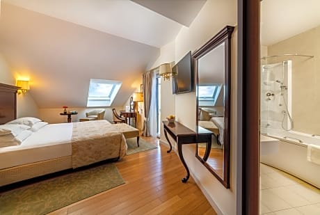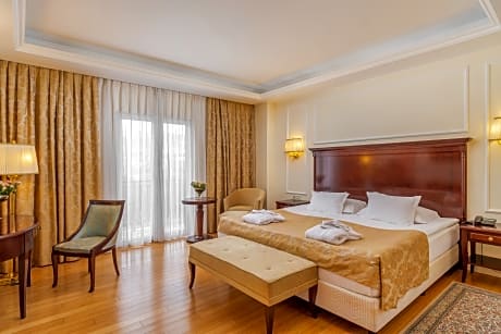 Modern rooms feature a private balcony with a view, comfortable seating area and marble bathroom. Satellite TV, air conditioning and internet access are available.