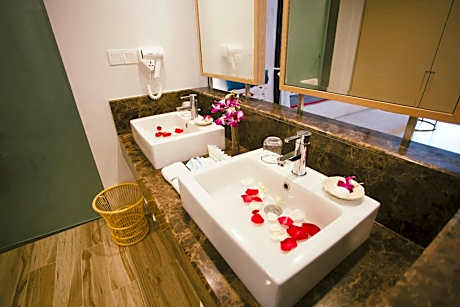 This modern beachside property features a large outdoor pool set in tropical landscapes. It offers spacious rooms that open out to a private balcony, fitness facilities and 6 dining options. Featuring a comfy lounge area with a sofa, the air-conditioned rooms are provided with a flat-screen satellite TV, a mini-bar and tea/coffee maker. Well-appointed bathrooms have a hairdryer and toiletries. Sand & Sandals Desaru Beach Resort & Spa is within a 30-minute drive from the crocodile and fruit farms. It is a 45-minute drive from Senai Airport and a 1.5-hour drive from Johor Bahru. Guests can enjoy an active game of tennis or relax with a traditional spa massage. Other leisure amenities include a games room, water sports facilities and a children’s playground. The in-house restaurant serves up Thai cuisine and other Asian delights, as well as modern Western fare, while Safari Bar offers a selection of refreshing beverages by the pool.